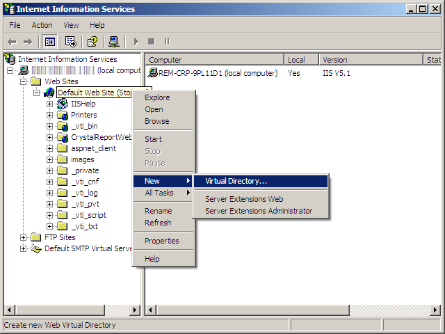 Right click on your website, choose New > Virtual Directory to add a new folder: